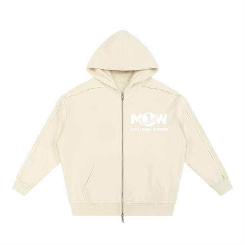 Contrast Tape Raw Edge Double Layered Zip Hoodie
